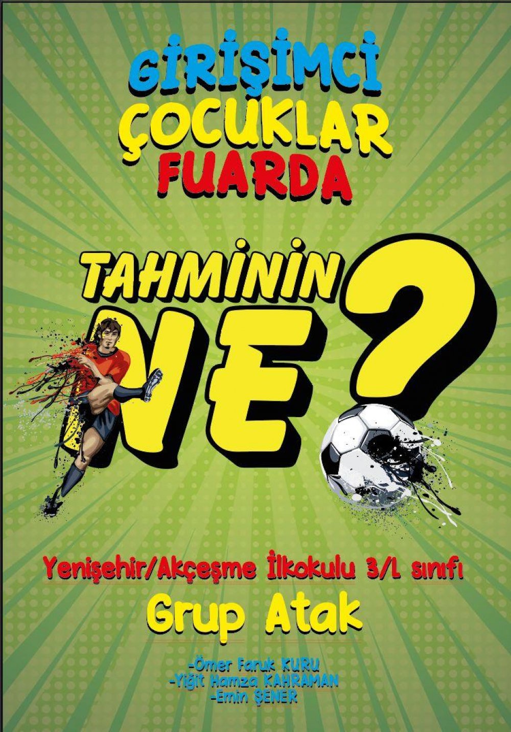 Akçeşme İlkokulu 3-L Sınıfı öğrencileri Bursa İl Milli Eğitim Müdürlüğü Ar-Ge Birimi tarafından BEBKA işbirliğiyle faaliyet gösteren Bursa İnovasyon Merkezi’nin Bursa’da öğrenim gören öğrencilerin girişimcilik alanında bilgi ve becerilerini artırıp girişimcilik kültürünü erken yaşlardan itibaren oluşturmak ve yaygınlaştırmak için başlattığı “Girişimci Çocuklar Fuarda” etkinliğine tamamen kendi fikir ve tasarımlarının ürünü olan “Tahminin Ne?” isimli kutu oyunlarıyla katılacaklar.
